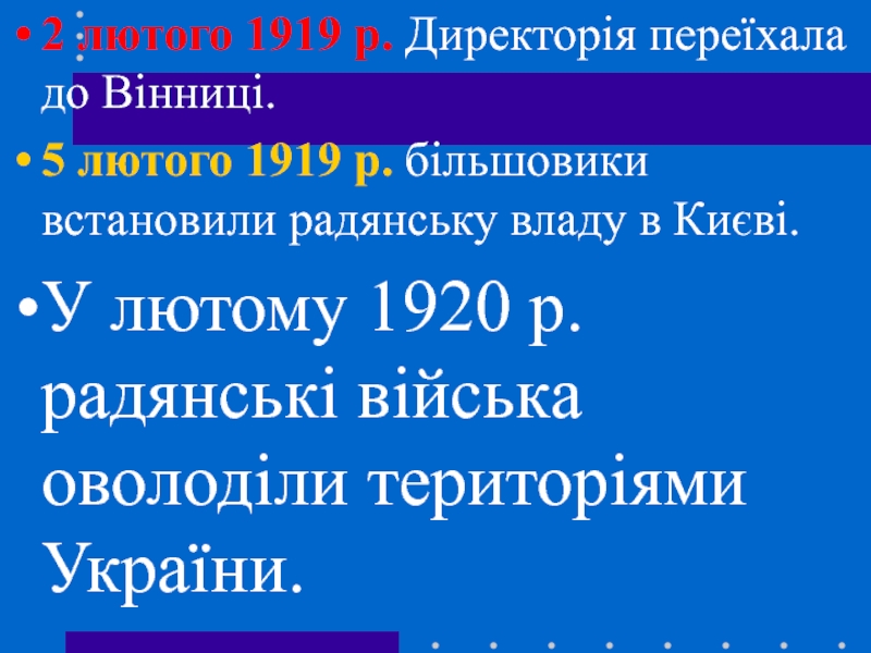 Слайд 632 лютого 1919 р. Директорія переїхала до Вінниці.