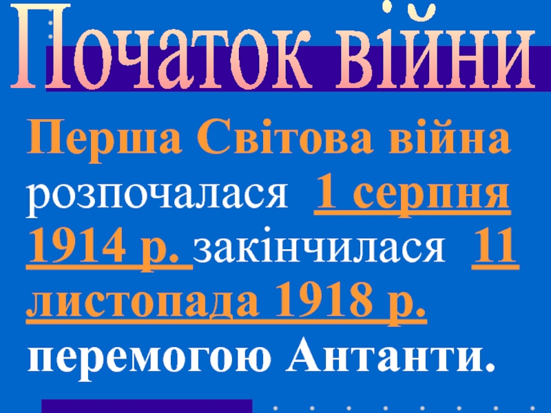 Слайд 8 Перша Світова війна розпочалася 1 серпня 1914 р. закінчилася