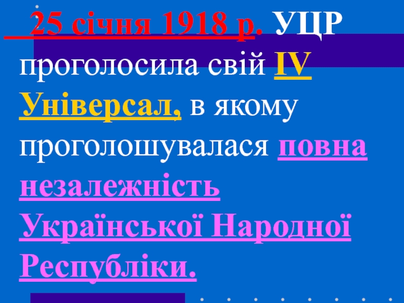 Слайд 41 25 січня 1918 р. УЦР проголосила свій IV