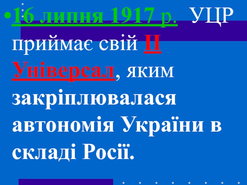 Слайд 2916 липня 1917 р. УЦР приймає свій II Універсал, яким