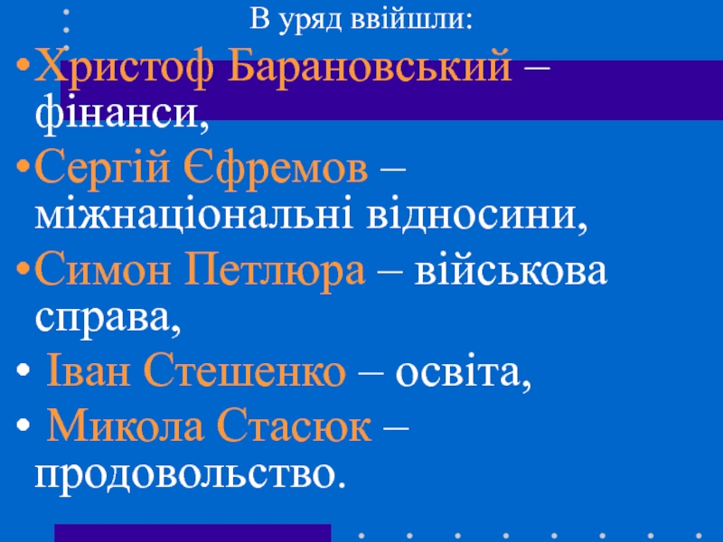 Слайд 25Центральна Рада сформувала перший уряд Генеральний секретаріат