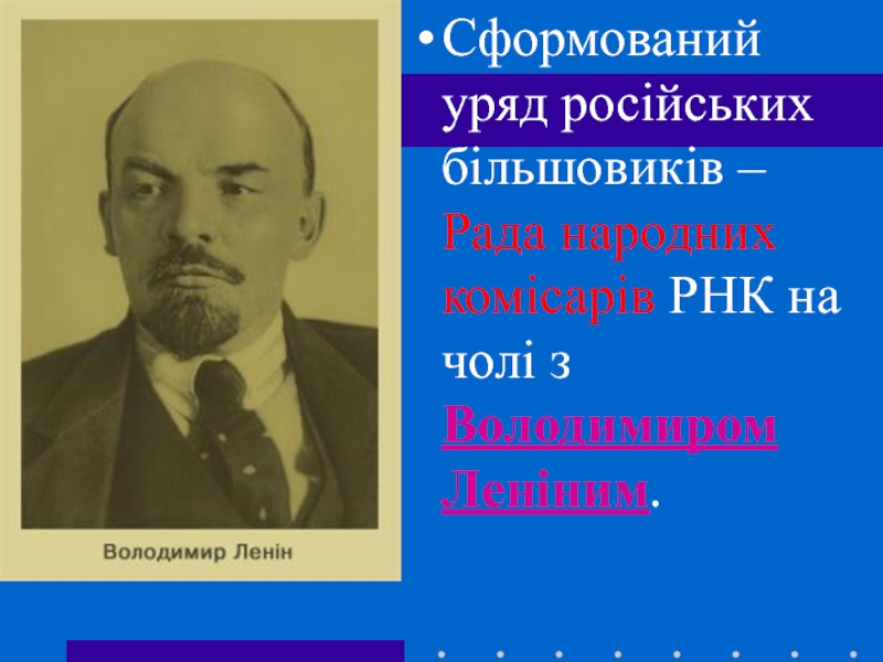 Слайд 30Сформований уряд російських більшовиків – Рада народних комісарів РНК на