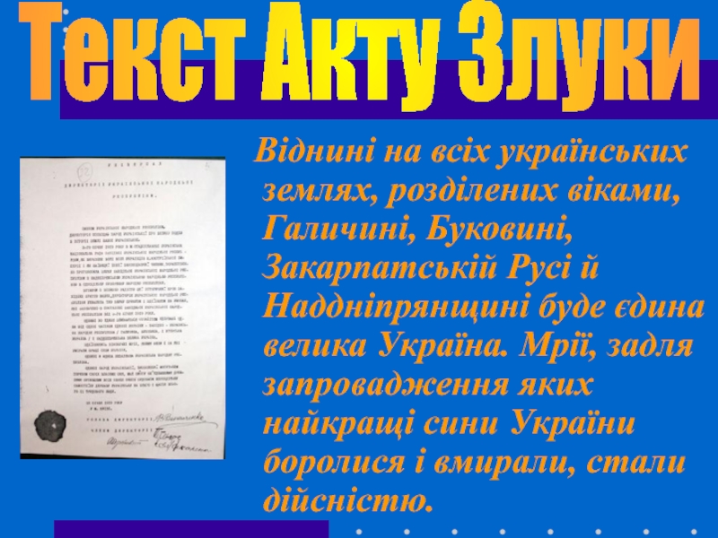 Слайд 62 Віднині на всіх українських землях, розділених віками, Галичині,