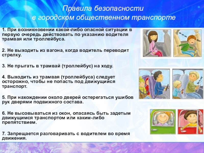 Слайд 5 Основные правила безопасного поведения пассажиров в общественном транспорте