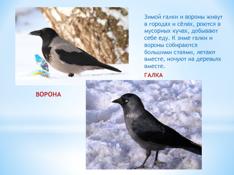 в мусорных кучах, добывают себе еду. К зиме галки и
