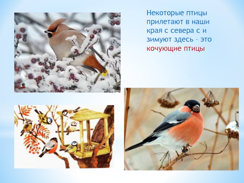 Слайд 14Некоторые птицы прилетают в наши края с севера с и