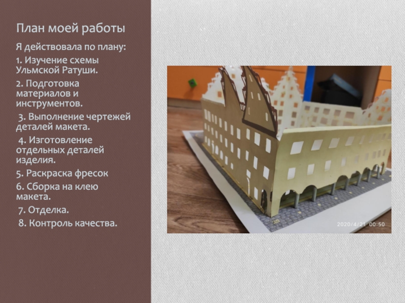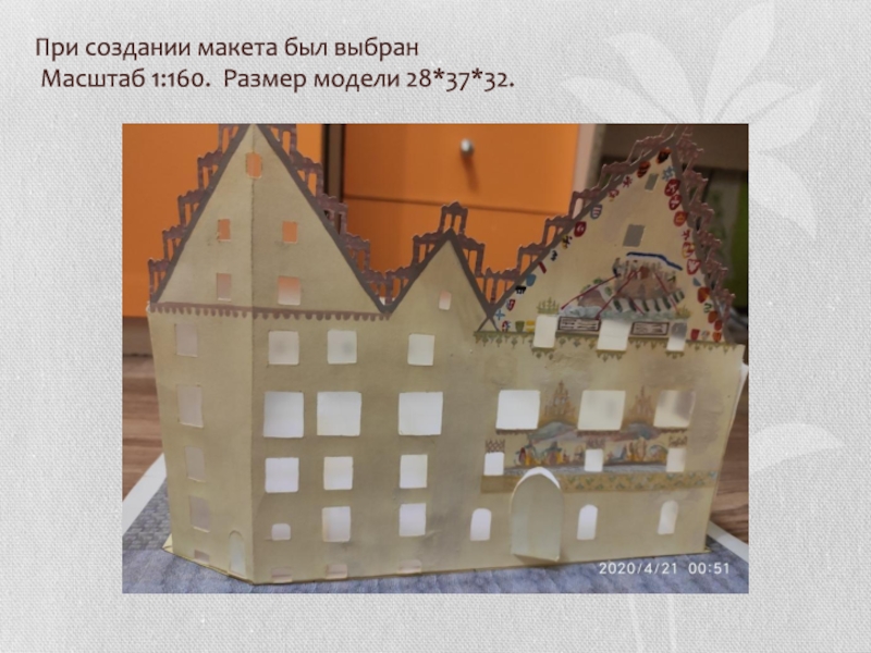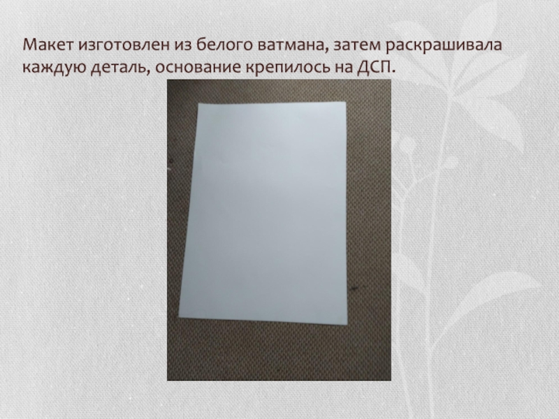 Слайд 12Макет изготовлен из белого ватмана, затем раскрашивала каждую деталь, основание