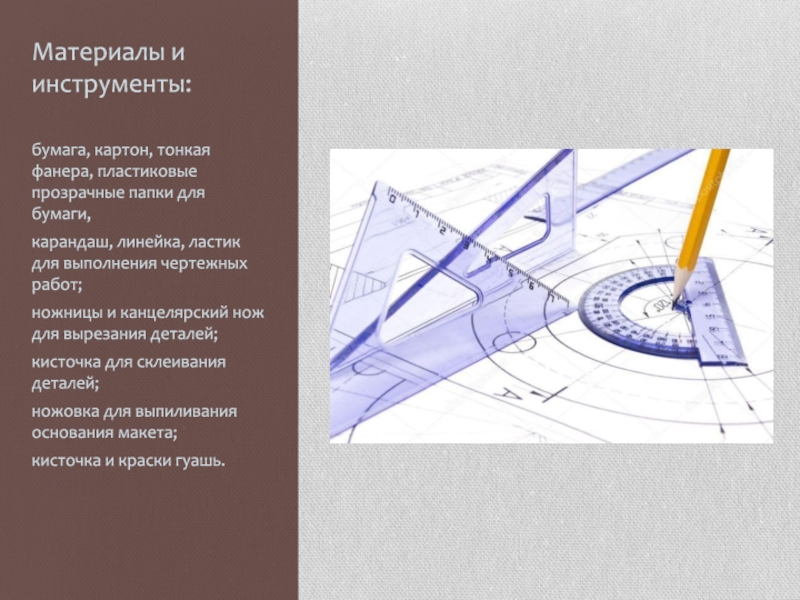 бумага, картон, тонкая фанера, пластиковые прозрачные папки для