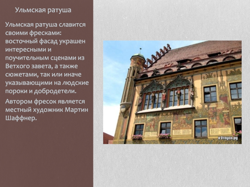 Ульмская ратуша славится своими фресками: восточный фасад украшен