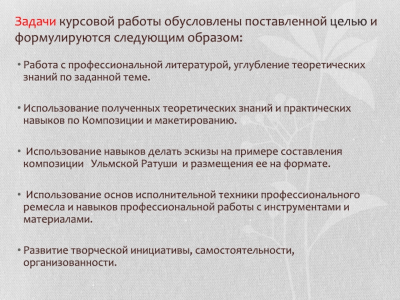 Задачи курсовой работы обусловлены поставленной целью и формулируются следующим образом: