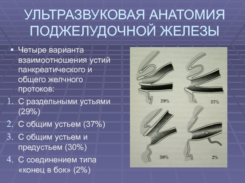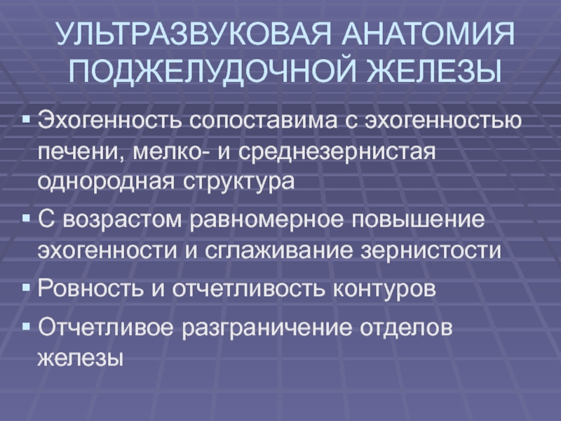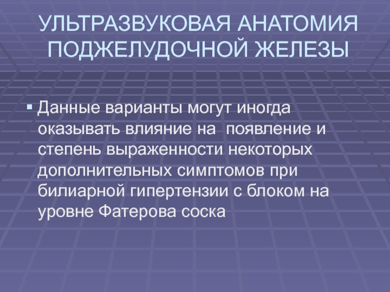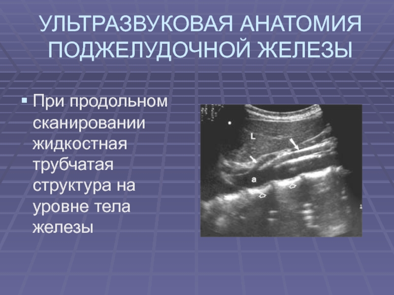Слайд 25УЛЬТРАЗВУКОВАЯ АНАТОМИЯ ПОДЖЕЛУДОЧНОЙ ЖЕЛЕЗЫ