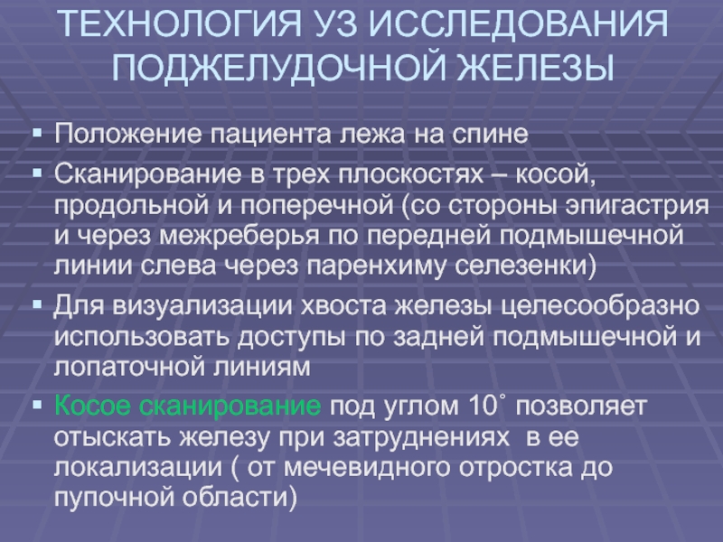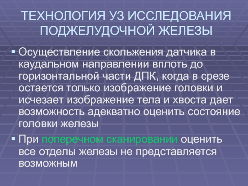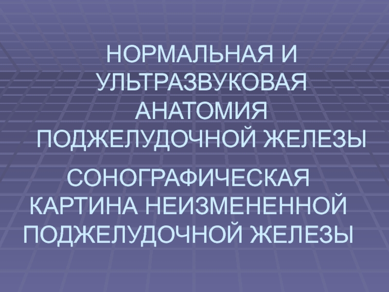 Слайд 1УЛЬТРАЗВУКОВОЕ ИССЛЕДОВАНИЕ ПОДЖЕЛУДОЧНОЙ ЖЕЛЕЗЫ