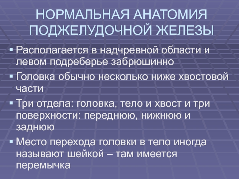 Слайд 3НОРМАЛЬНАЯ АНАТОМИЯ ПОДЖЕЛУДОЧНОЙ ЖЕЛЕЗЫ