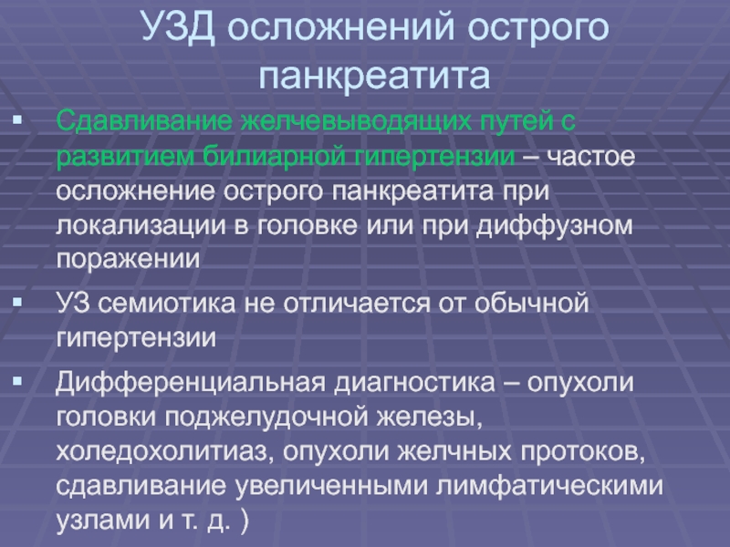 Слайд 128УЗД злокачественных опухолей поджелудочной железы