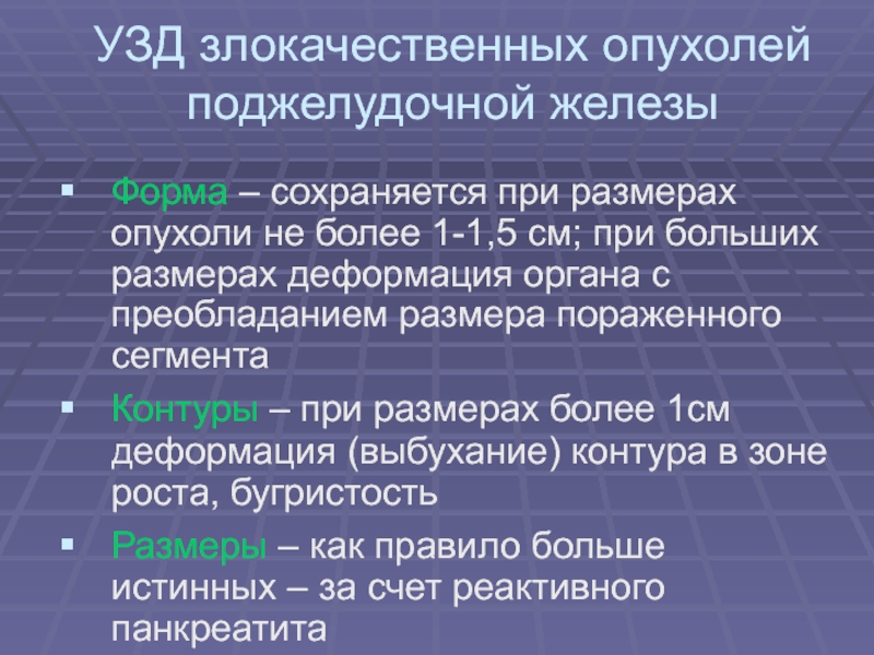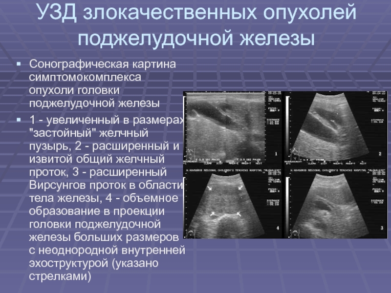 Слайд 131УЗД злокачественных опухолей поджелудочной железы