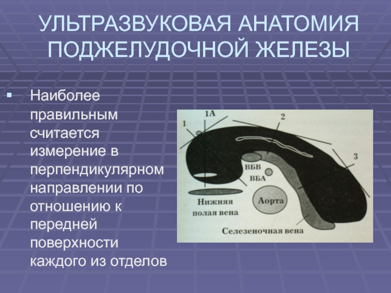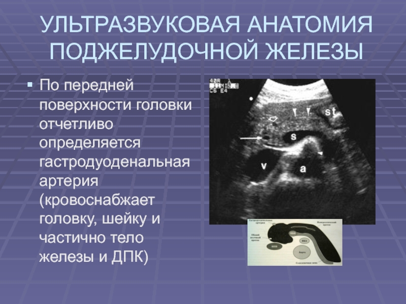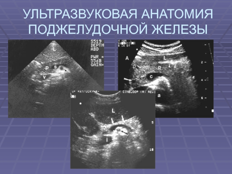 Слайд 11УЛЬТРАЗВУКОВАЯ АНАТОМИЯ ПОДЖЕЛУДОЧНОЙ ЖЕЛЕЗЫ