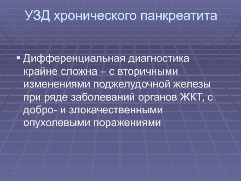 Слайд 119УЗД злокачественных опухолей поджелудочной железы