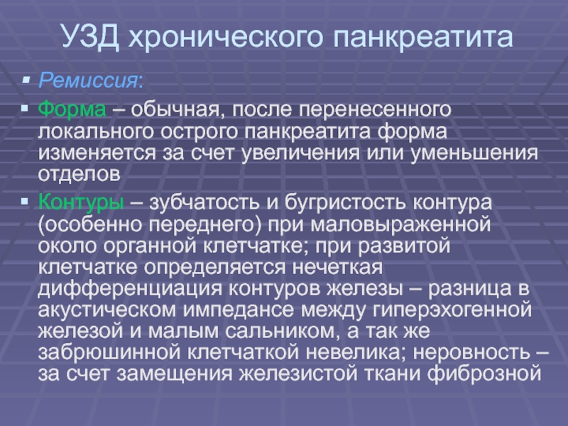 СОНОГРАФИЧЕСКАЯ КАРТИНА НЕИЗМЕНЕННОЙ ПОДЖЕЛУДОЧНОЙ ЖЕЛЕЗЫ
