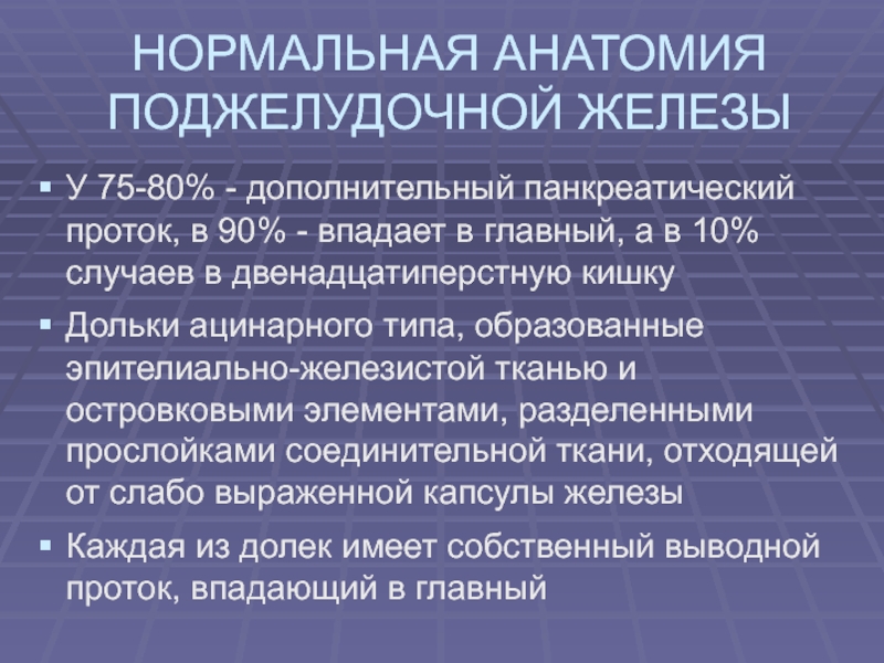 Слайд 8НОРМАЛЬНАЯ АНАТОМИЯ ПОДЖЕЛУДОЧНОЙ ЖЕЛЕЗЫ