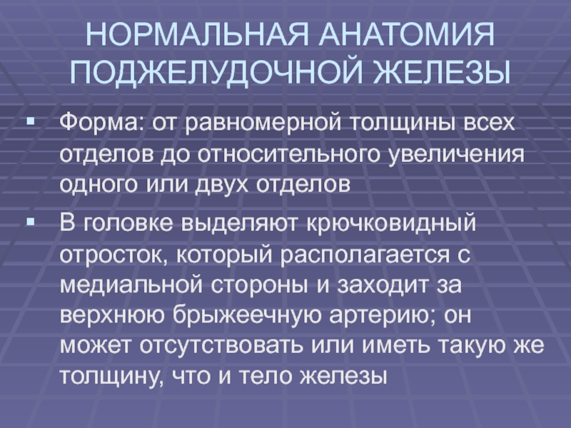 Слайд 9НОРМАЛЬНАЯ АНАТОМИЯ ПОДЖЕЛУДОЧНОЙ ЖЕЛЕЗЫ