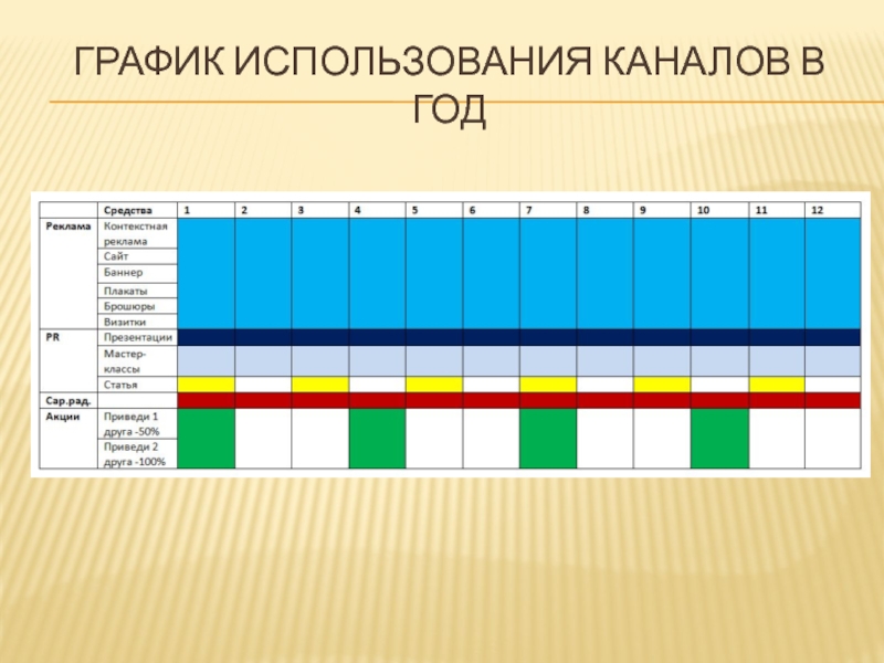 Каналы продвижения.  Стоимость и объем+ 20 000 рублей в год – на маркетинговые мероприятия, в целях