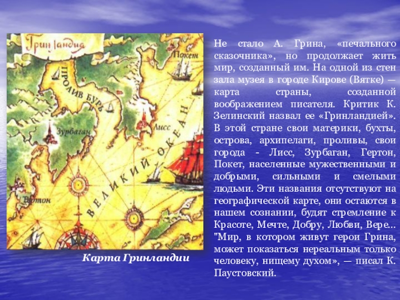 «Грин прожил тяжелую жизнь. Все в ней, как нарочно, сложилось так, чтобы сделать из Грина преступника или злого обывателя….