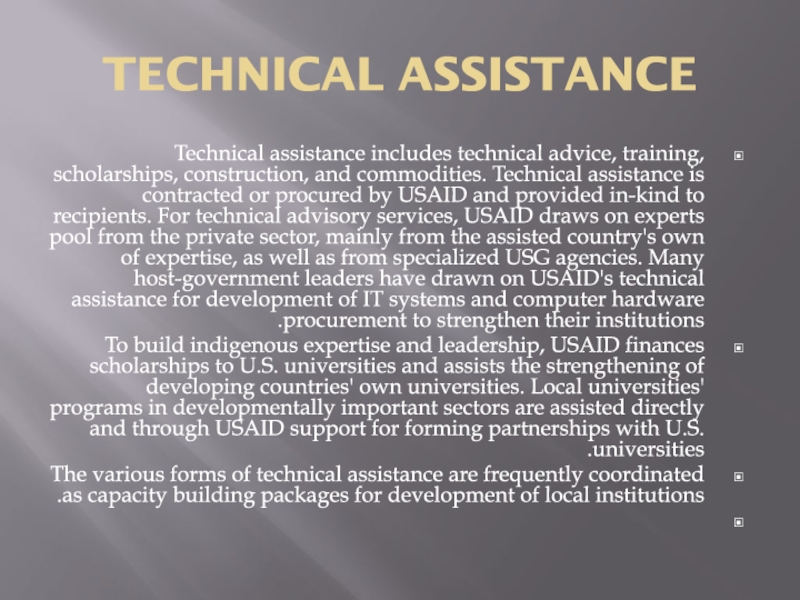 Слайд 11TECHNICAL ASSISTANCE