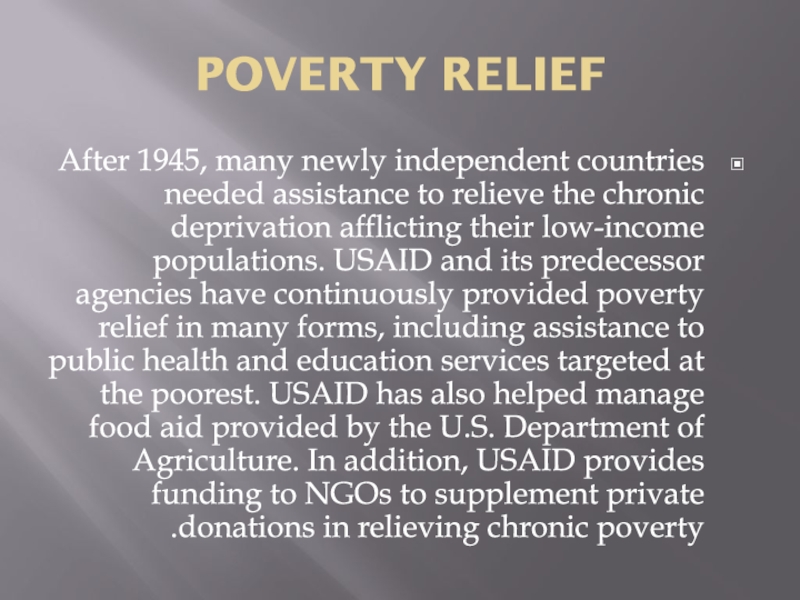 Слайд 6POVERTY RELIEF