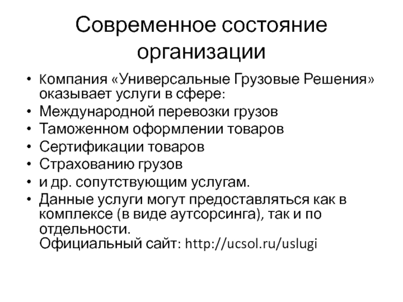Kомпания «Универсальные Грузовые Решения» оказывает услуги в сфере: