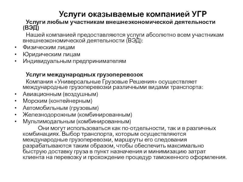 Услуги любым участникам внешнеэкономической деятельности (ВЭД)