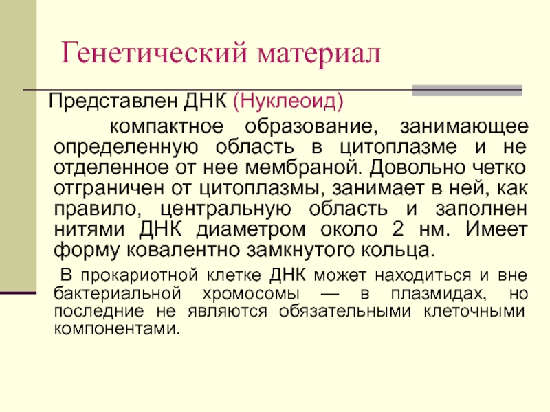 В прокариотной клетке ДНК может находиться и вне бактериальной хромосомы — в плазмидах, но последние не являются обязательными клеточными компонентами.