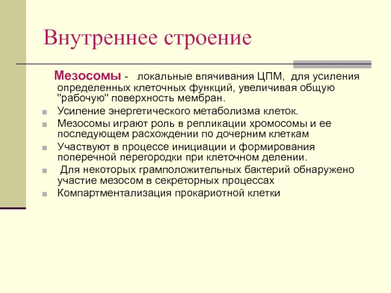 Мезосомы играют роль в репликации хромосомы и ее последующем расхождении по дочерним клеткам