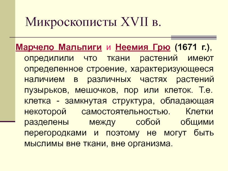 Марчело Мальпиги и Неемия Грю (1671 г.), опредилили