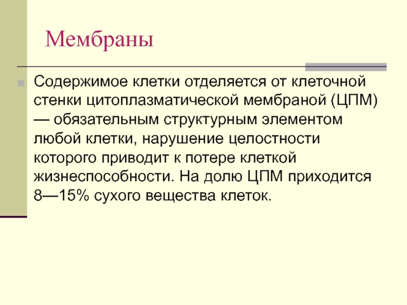 потере клеткой жизнеспособности. На долю ЦПМ приходится 8—15% сухого вещества клеток.
