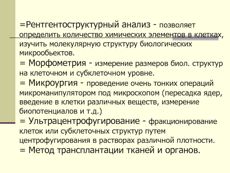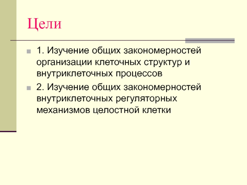 1. Изучение общих закономерностей организации клеточных структур и внутриклеточных процессов