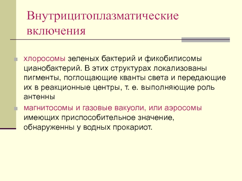 хлоросомы зеленых бактерий и фикобилисомы цианобактерий. В этих структурах