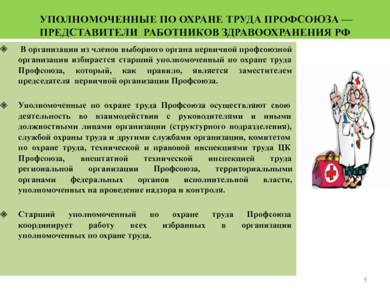 УПОЛНОМОЧЕННЫЕ ПО ОХРАНЕ ТРУДА ПРОФСОЮЗА — ПРЕДСТАВИТЕЛИ РАБОТНИКОВ ЗДРАВООХРАНЕНИЯ