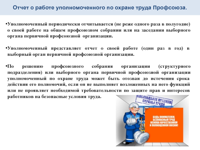 Отчет о работе уполномоченного по охране труда Профсоюза.