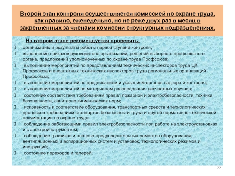 Слайд 22Второй этап контроля осуществляется комиссией по охране труда,