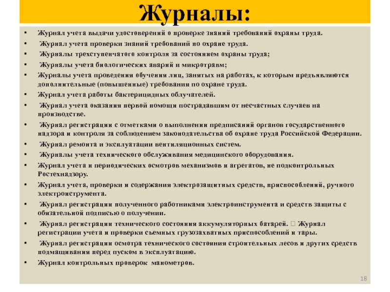 Журналы учета проведения обучения лиц, занятых на работах, к которым предъявляются дополнительные (повышенные) требования по охране труда.