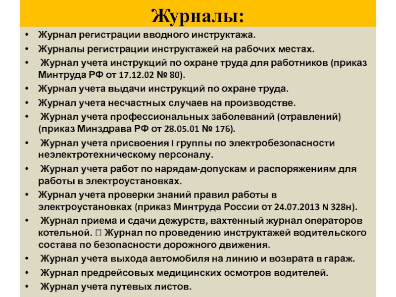 Журнал приема и сдачи дежурств, вахтенный журнал операторов котельной. Журнал по проведению инструктажей водительского состава по безопасности дорожного движения.