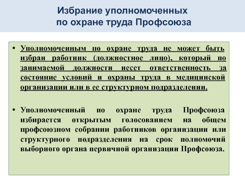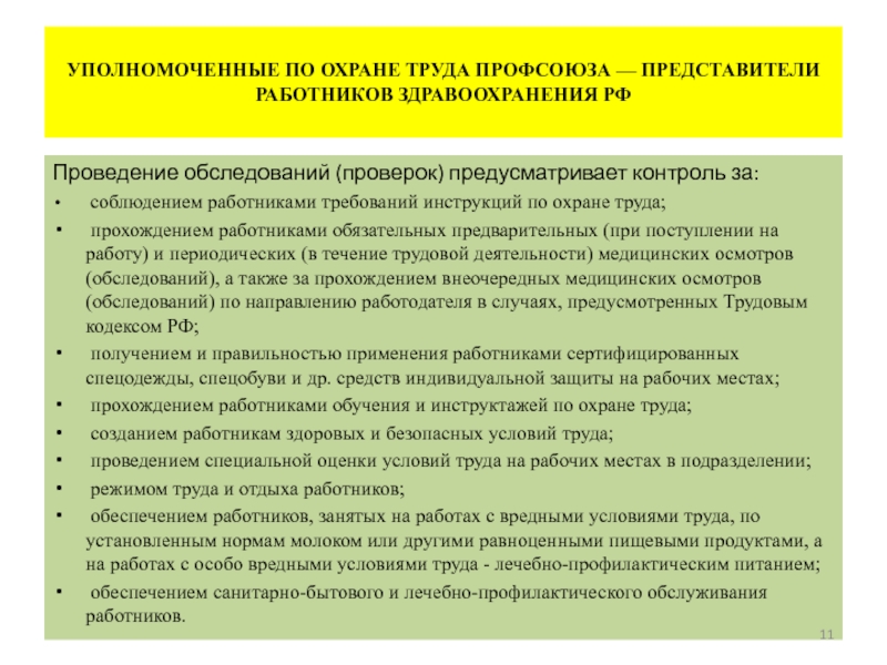 Слайд 11УПОЛНОМОЧЕННЫЕ ПО ОХРАНЕ ТРУДА ПРОФСОЮЗА — ПРЕДСТАВИТЕЛИ РАБОТНИКОВ ЗДРАВООХРАНЕНИЯ РФ