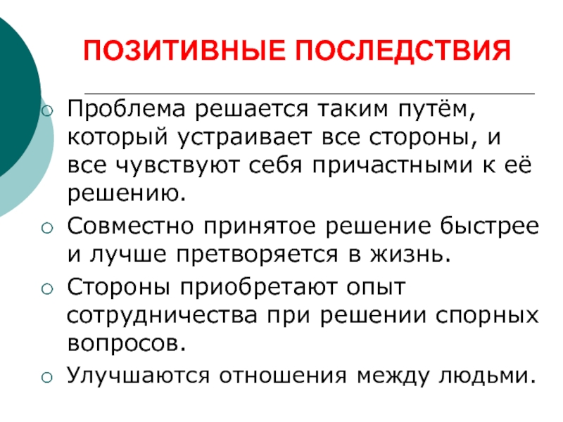 Слайд 45ПОЗИТИВНЫЕ ПОСЛЕДСТВИЯ
