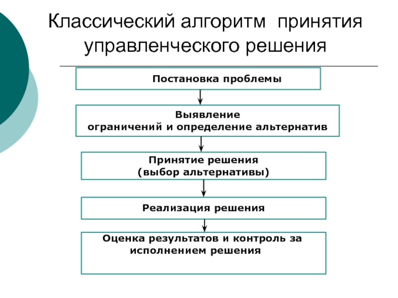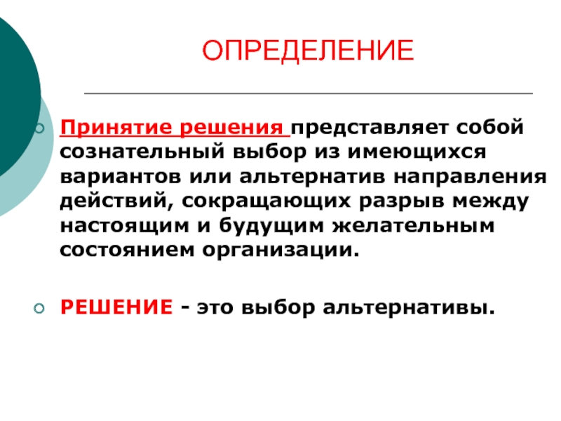 Принятие решения представляет собой сознательный выбор из имеющихся вариантов или
