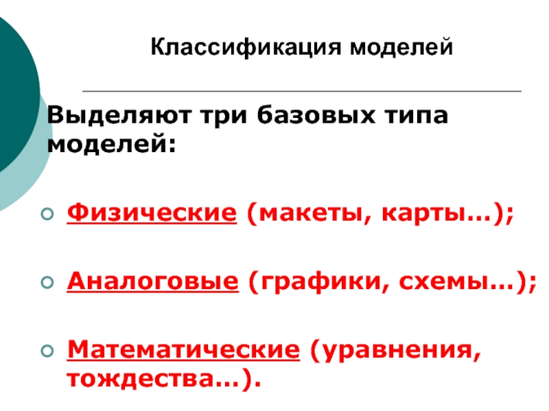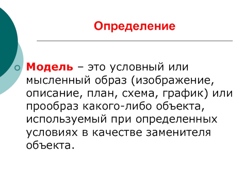 Модель – это условный или мысленный образ (изображение, описание, план,
