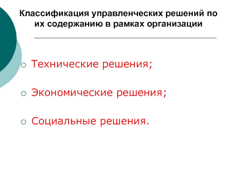 Слайд 14Классификация управленческих решений по их содержанию в рамках организации