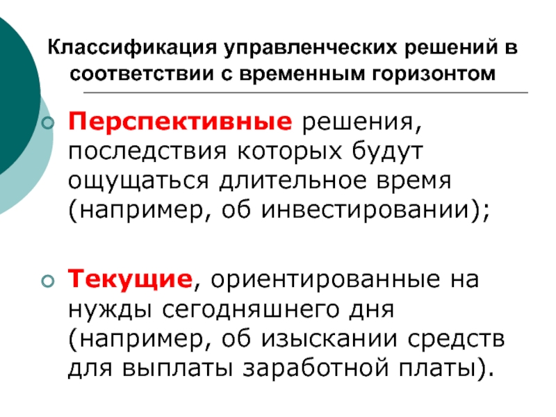 Слайд 8Классификация управленческих решений в соответствии с временным горизонтом