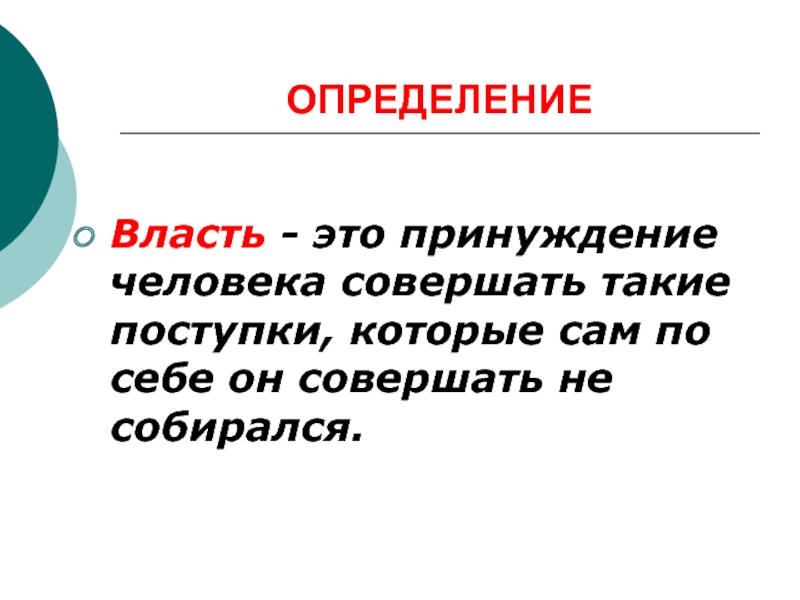 Власть - это принуждение человека совершать такие поступки, которые сам