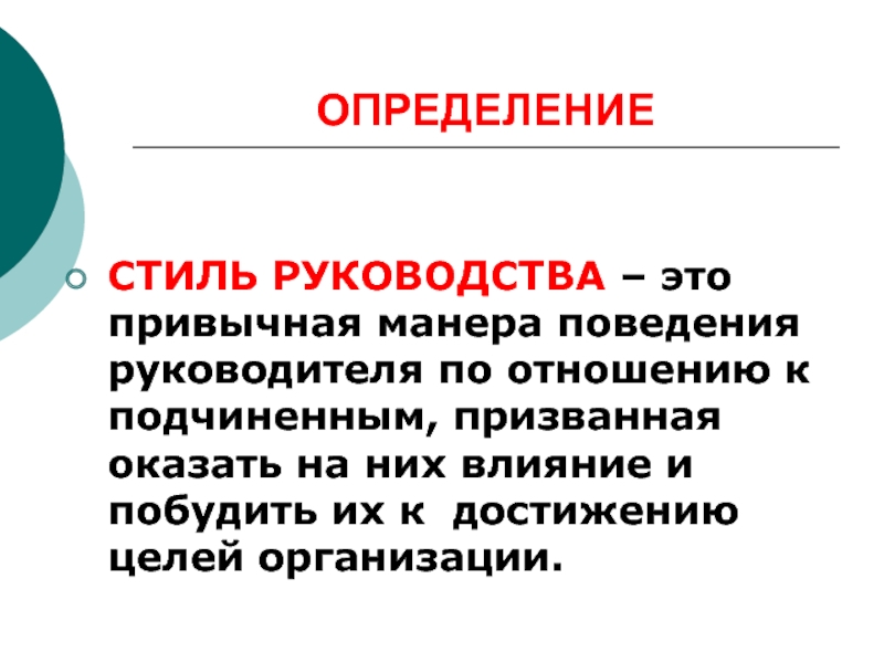 СТИЛЬ РУКОВОДСТВА – это привычная манера поведения руководителя по отношению