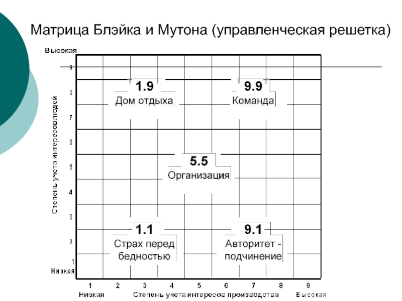Слайд 35Матрица Блэйка и Мутона (управленческая решетка)